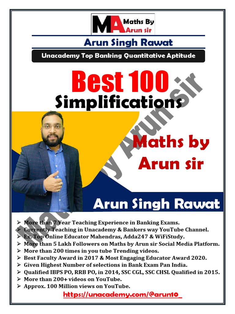 Best 100 Simplification Maths By Arun Sir Business Business